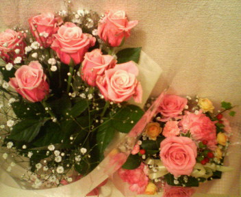 今日、3年間勤めた会社を退職しました。お祝いの花束もらった(^-^)